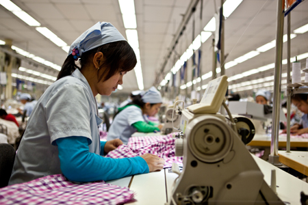 Filled with neat rows of sewing stations, ample lighting and workers dressed in uniforms, the factory floor is a temple to efficiency—creating an atmosphere that bears more resemblance to a hospital than a sweatshop.